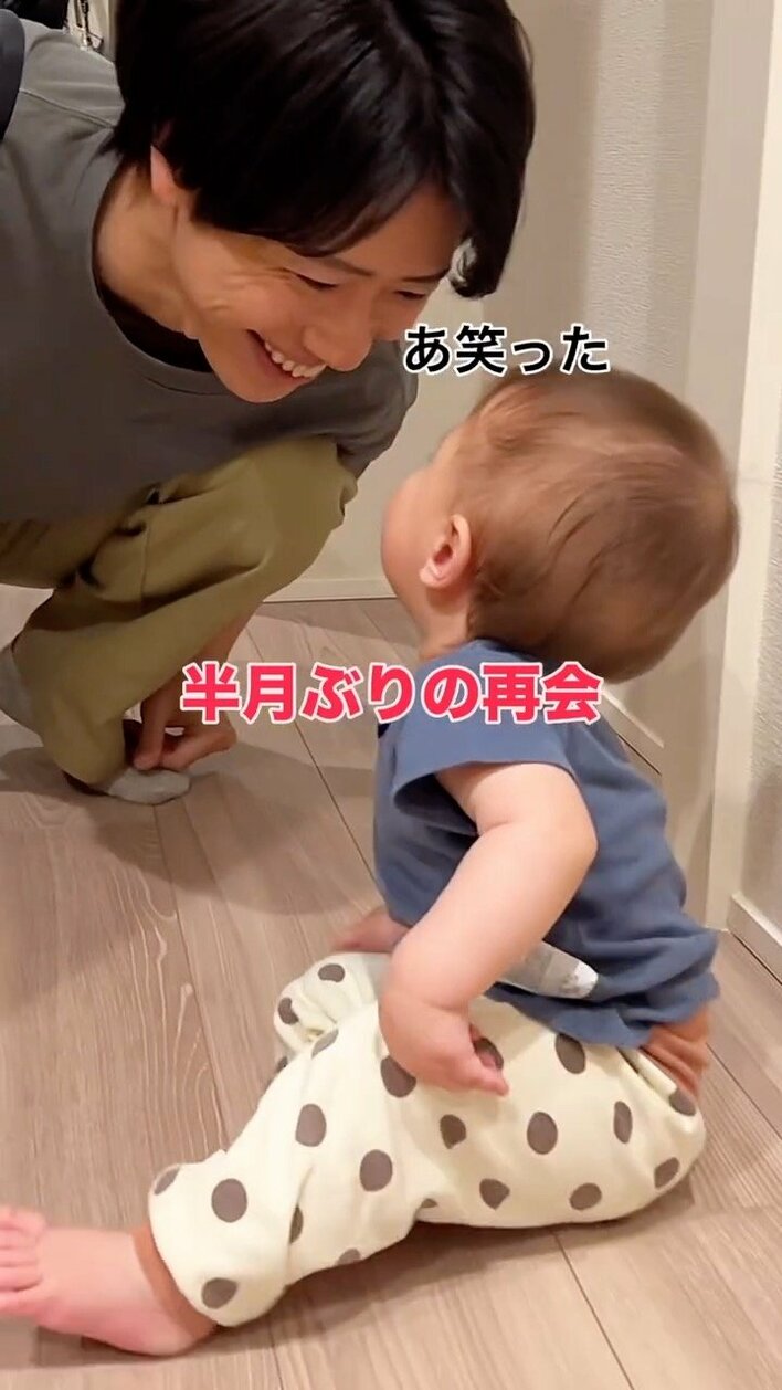 久しぶり会えた瞬間に、息子さんが見せた笑顔が「可愛すぎる!」と癒やされる人が続出し、再生回数は900万回を突破しています。