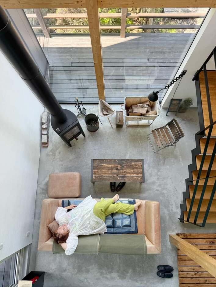 2階分ほどの大きな窓が吹き抜けにあったりと、非常に広くおしゃれな空間です。「緑に囲まれるといつもより熟睡しちゃうね!」とバービーさんはソファに横になっていました。