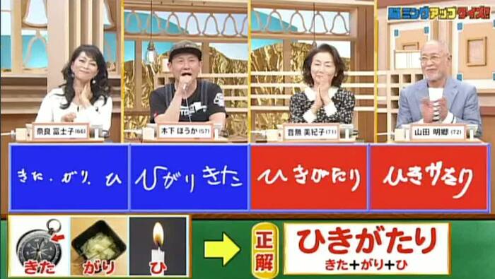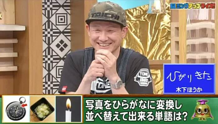 木下の答えは、「ひがりきた」。写真のもの自体は分かっているようだが、すっかりお手上げ状態で、不正解。