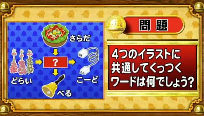 次は、くっつきワードの問題。次の4つのイラストに共通してくっつくワードを答えよ。