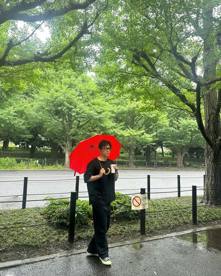 傘を差しながら雨の中を歩くショットを公開し、ファンから歓喜の声が寄せられています。