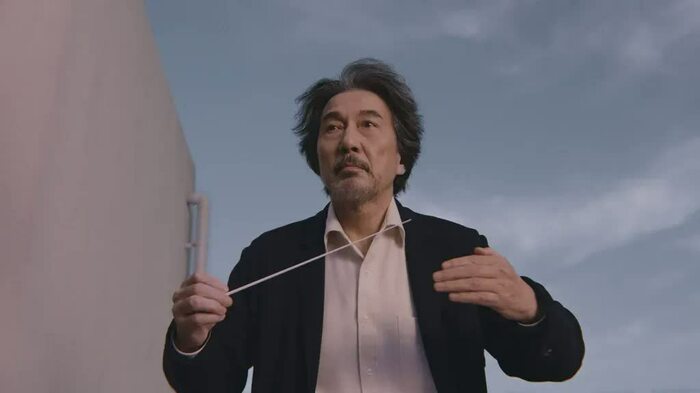 長い役者人生ながら、指揮者役は初めてという役所。指導の先生から四拍子の振り方を教わり、「イチ、ニッ、サン、シ~」という合図に合わせて、テンポと動きを体に覚え込ませていた。