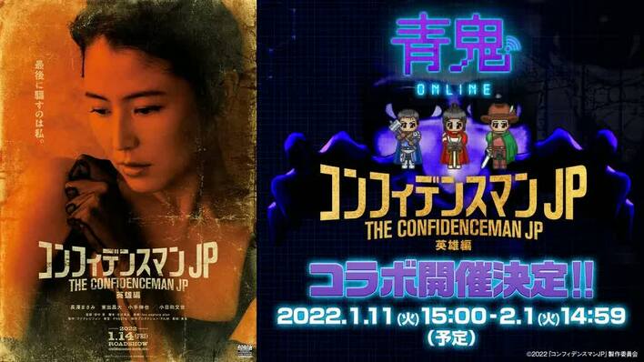 映画「コンフィデンスマンJP 英雄編」がアプリゲーム「青鬼オンライン」とコラボすることが決定した。