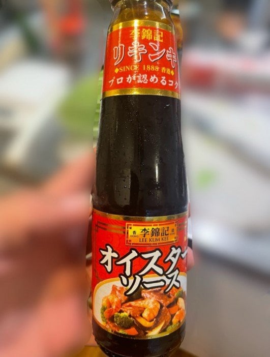 まずは材料を披露した高橋さん。「上手いんだこら、ホントに」と、オイスターソースを手に持ち...