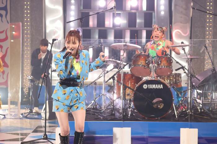 また、3人は、KinKi Kids、堂本ブラザーズバンドとともに、「タイムマシンにおねがい」(サディスティック・ミカ・バンド/1974年)をライブパフォーマンスで披露。今年ソロメジャーデビューを果たしたファーストサマーウイカが歌を担当し、「歌は苦手」という井上がコーラスで参加。そして、フワちゃんが「一度だけ触ったことがある」というドラムに挑戦し、テレビで初演奏する。