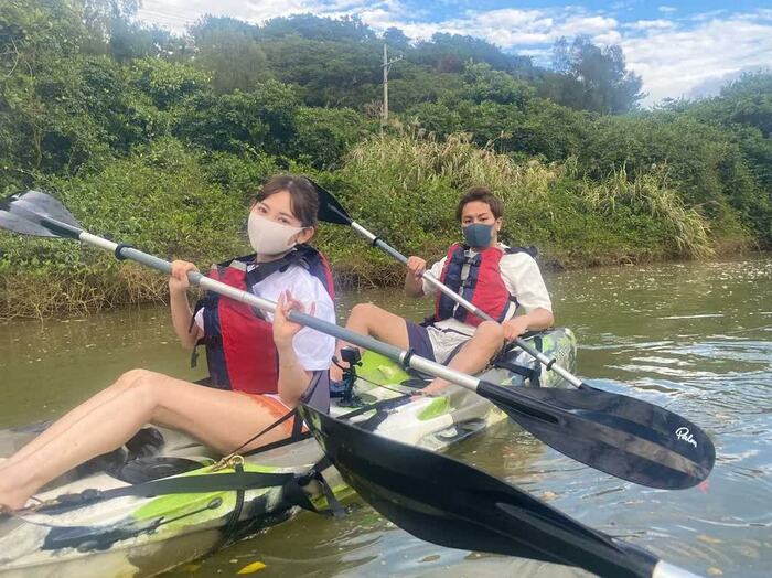 マングローブカヤック、ゴーカート対決に大興奮!