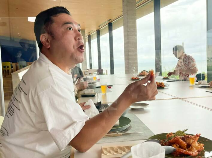 続いて一行は、絶景の海を眺めながら絶品ステーキが食べられるレストランへ。有吉は超高額のTボーンステーキを注文。有吉以外のメンバーも注文をしようとすると、マイペースな有吉が乾杯も待たずに1人で先にビールをゴクゴクと飲み始める。