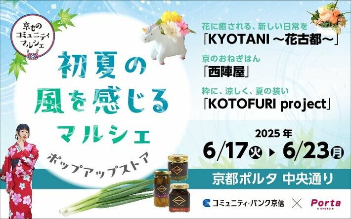 双方の高い親和性により、2023年度より連携実績を積み重ね、このたび京都ならではのアイテムや魅力を発信するポップアップストア「京ものコミュニティマルシェ」を開催いたします。