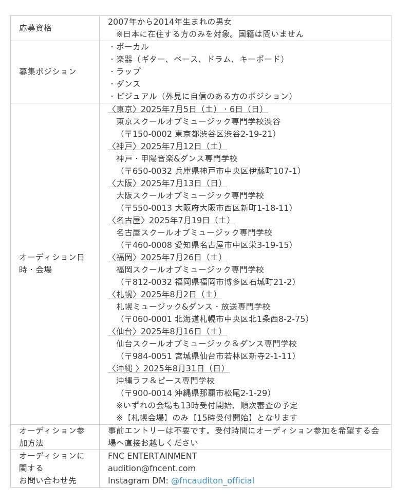 ◆2025 FNC × JIKEI COM AUDITION in JAPAN 概要