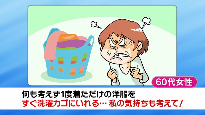 まず紹介されたのは、「梅雨だから洗濯物を減らしたいのに、息子たちが1回着ただけの洋服をすぐに洗濯かごに入れる」という60代女性のモヤモヤです。