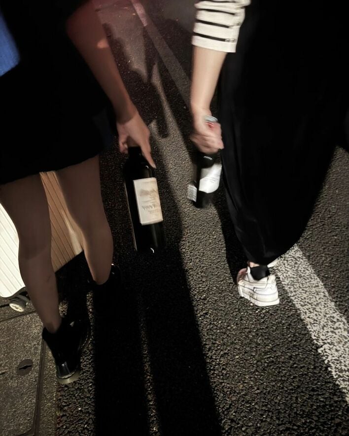 また、ワインボトルを直接持ち、友人たちと夜の道を歩く様子も見せ、SNSからは「ボトル直で持っているの好きすぎます笑」「物騒すぎておもろい!」などの声が!