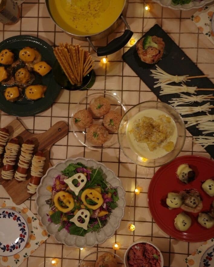 入山さんは友人とハロウィンを楽しんだそうで、公開されたショットでは、テーブルにほうきやお化けの顔の食べ物などがズラリと並べられています。
