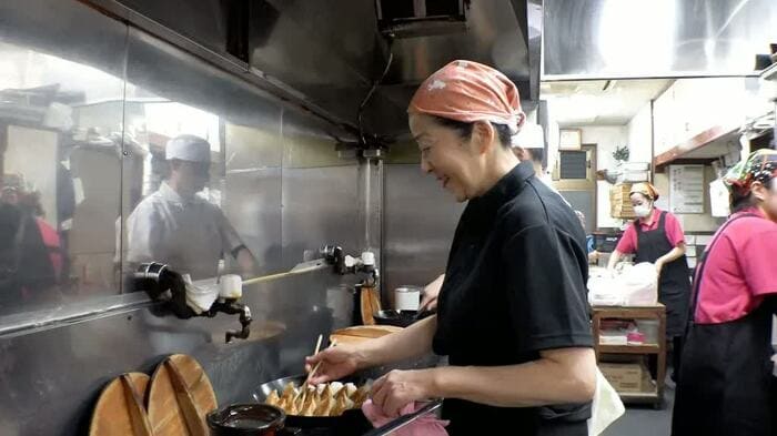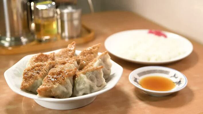友田と姉、妹、さらにその娘たちに加え、長女の夫と家族総出で店を切り盛り。70年以上前に創業し、祖父母が作り出した、焼いて茹でるオリジナルの餃子を今も守り続けている。
