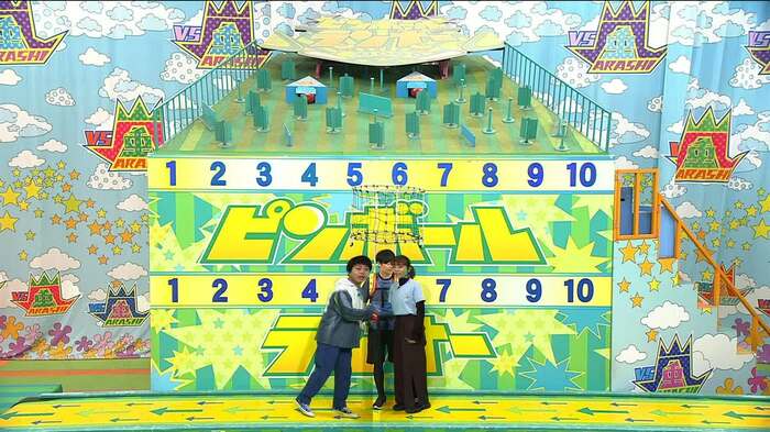 ランナーがチームメイトの指示のもと巨大ピンボール台から転がり落ちてくるボールをキャッチするゲーム「ピンボールランナー」では、嵐チームからは松本潤がランナーに挑戦。ヒロミが巨大化(!?)し、松本にボールの位置を伝えていく。