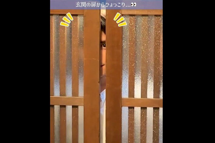 すぐに扉を一度締めますが、今度は先ほどより広めに扉を開けて、家の中を探るようにキョロキョロとする本田さん。最後には、目を見開き“SNSカメラに気づいてびっくり”といったように、おちゃめに驚きの表情を見せる本田さんでした。