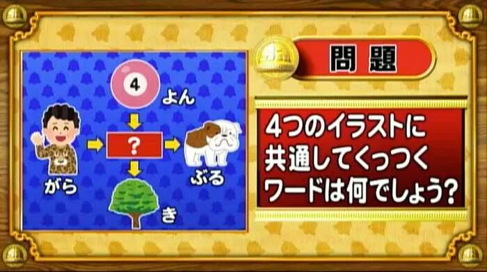 次は、くっつきワードの問題。次の4つのイラストに共通してくっつくワードを答えよ。