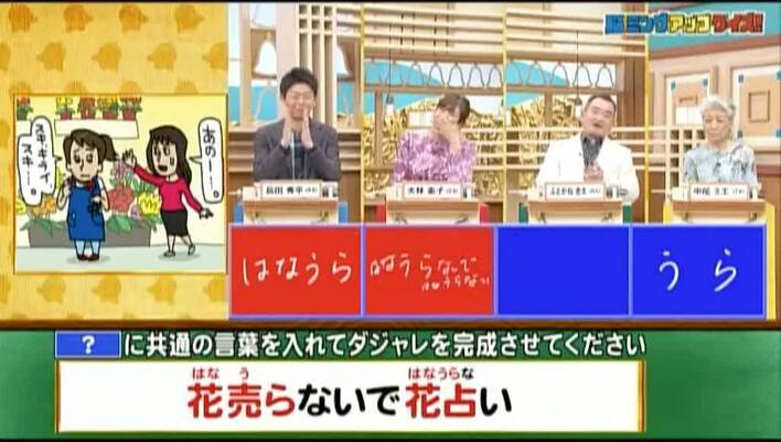 正解は「はなうら(花売らないで花占い)」。島田と大林が正解。