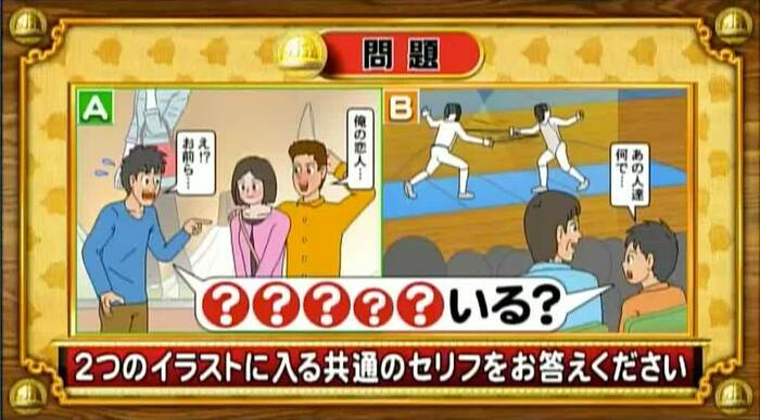 次は、共通セリフ問題。次の2つのイラストに入る共通のセリフを答えよ。