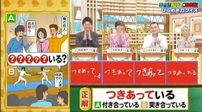 正解は「つきあっている(付き合っている/突き合っている)」。見事に全員正解!