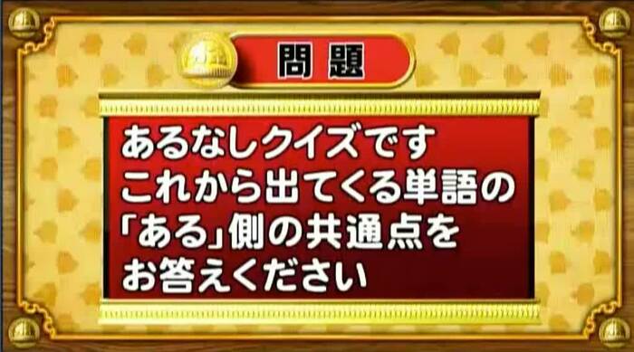 最後は、あるなしクイズ。次の単語の「ある」側の共通点を答えよ。