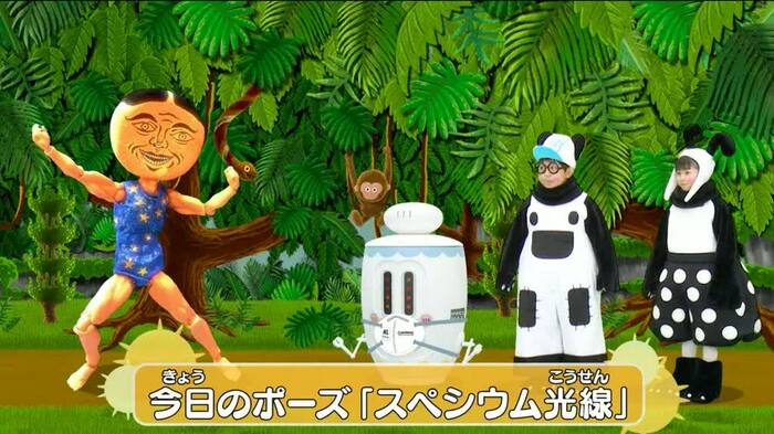 正解が出たものの、せっかくなのでじゃじゃじゃは、“自分で考えたスペシウム光線”として、両手と片足を前に出したポーズを披露。じゃじゃじゃのポーズに新体操のお兄さんは「かわいいじゃないか」と喜んだ。