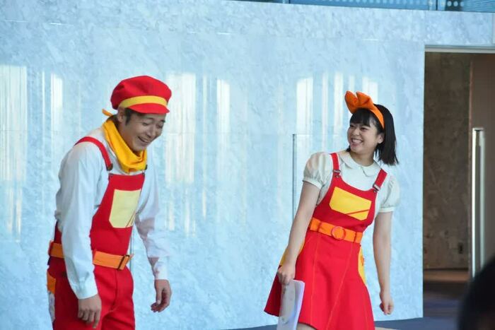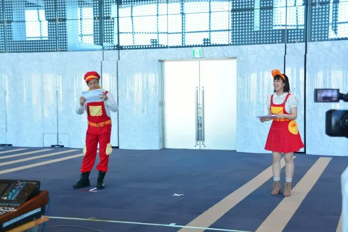つるのさんは昨年3月にもファミリーコンサートに出演しているため、「全然、大丈夫ですよ」と余裕の表情ですが、2年ぶりとなる杉原アナはどこかソワソワした様子。実際には広いステージを駆け回るため、リハーサルでも同じ距離を取ってステージの距離感を掴んでいきます。