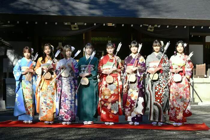 1月7日(金)、今年新成人になる乃木坂46のメンバー、久保史緒里、遠藤さくら、賀喜遥香、坂口珠美、佐藤璃果、金川紗耶、中村麗乃、北川悠理が、グループ名に由来のある乃木神社で成人式を行った。