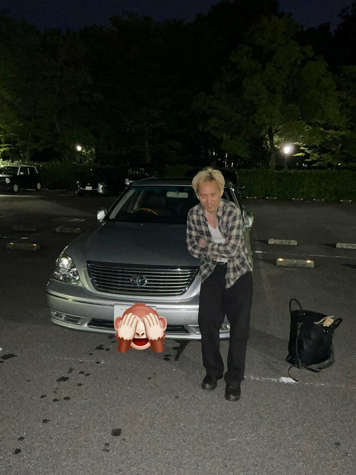 お笑いコンビ・黒帯のてらうちさんが2025年6月16日に自身のXを更新。新しい愛車 トヨタのセルシオとの2ショット写真を投稿しました。
