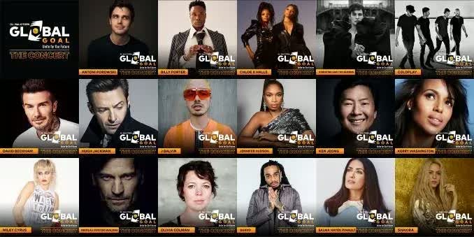 「Global Goal: Unite for Our Future」では、コールドプレイ、J.バルヴィン、ジャスティン・ビーバー、マイリー・サイラス、シャキーラによるパフォーマンスをフィーチャーし、クリス・ロック、ヒュー・ジャックマンなどが参加する。