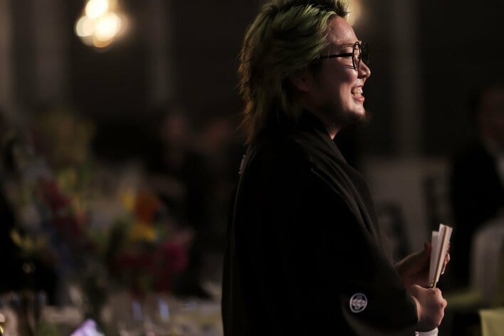 投稿では、披露宴の最中に撮影したのか、袴姿で光に照らされたこっちのけんとさんが、満面の笑みで遠くを見つめているようなショットを公開。