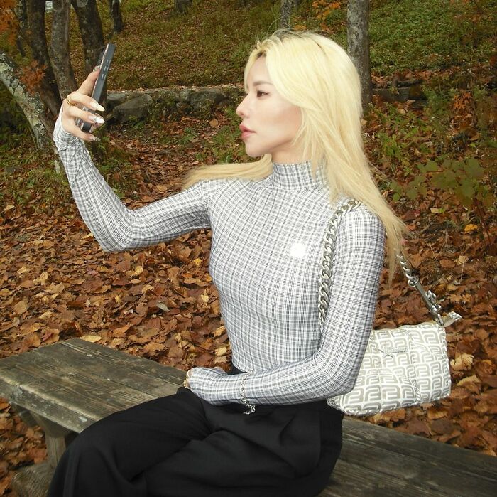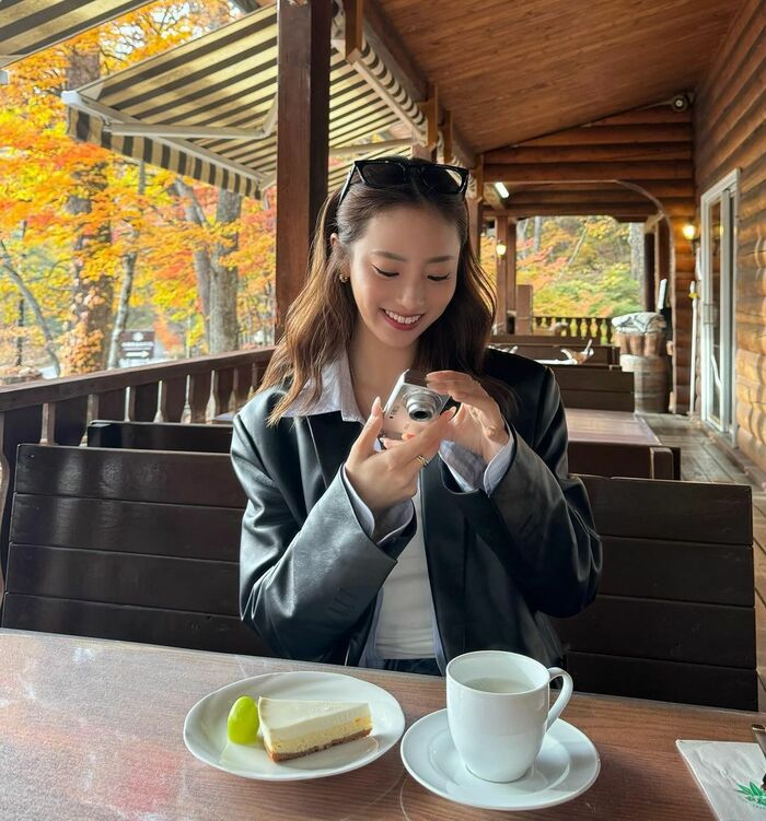 「気づいたら11月」というコメントとともに、美しく色づいた紅葉をバックにカメラにポーズを決める自身の写真を投稿した中町さん。