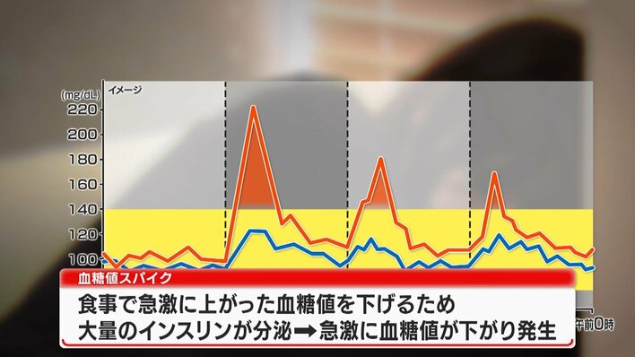 食事による血糖値の乱高下により、強い眠気などが起きる「血糖値スパイク」。