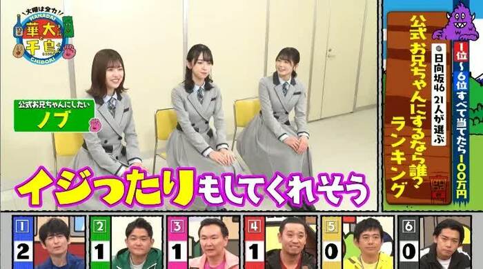 第1レースは、日向坂46のメンバー21人が選ぶ「公式お兄ちゃんにするなら誰?ランキング」。
