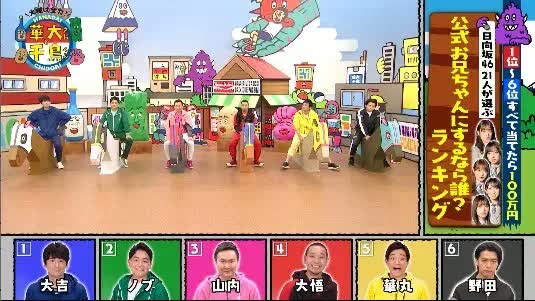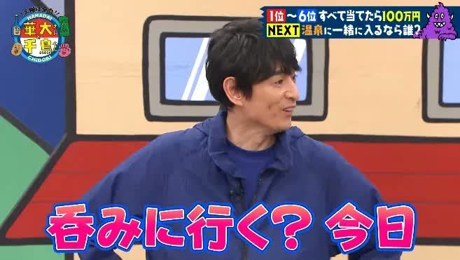 野田と博多華丸・大吉、千鳥(大悟・ノブ)、山内健司(かまいたち)の6人が協力して、自分たちに関するランキングの1位から6位までを予想。順位をぴったり的中させると賞金100万円が獲得できる。