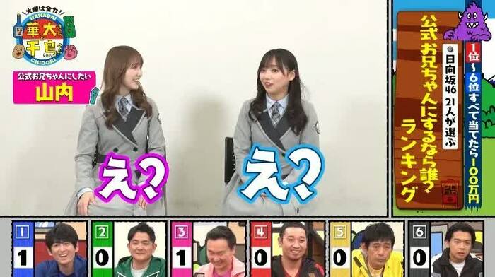 過去にこの企画で回答者になったことがある野田は「しゃべることないと上位にあげられないんですよ。何かしらエピソードを話すために…、(日向坂46と接点がある)山内かもしれないです」と新たな切り口を提示。