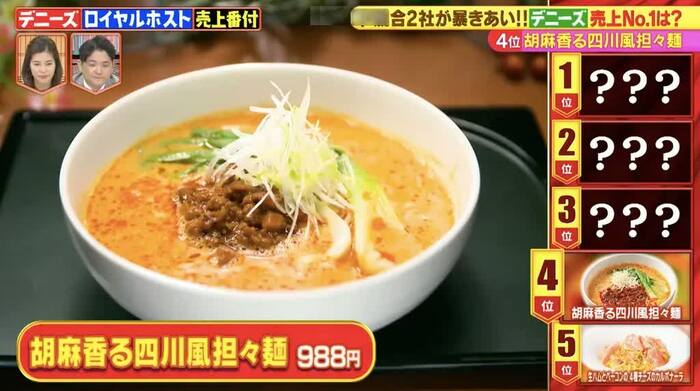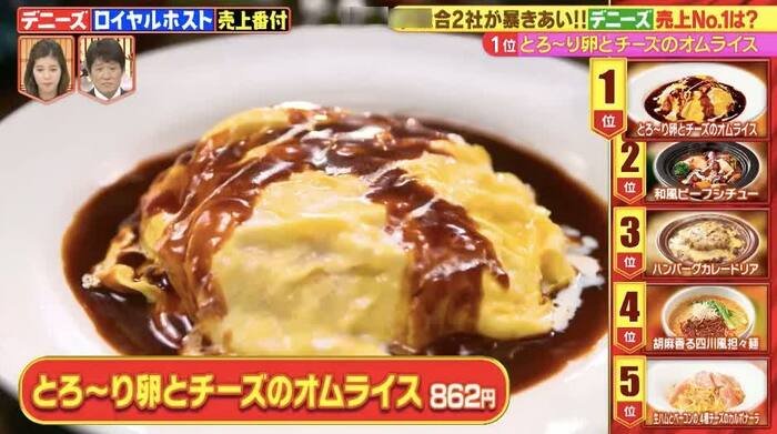1月12日(水)放送の『林修のニッポンドリル デニーズ・ロイヤルホスト売上番付SP』では、ファミリーレストラン界の巨大チェーン、デニーズとロイヤルホストの売上番付を発表した。