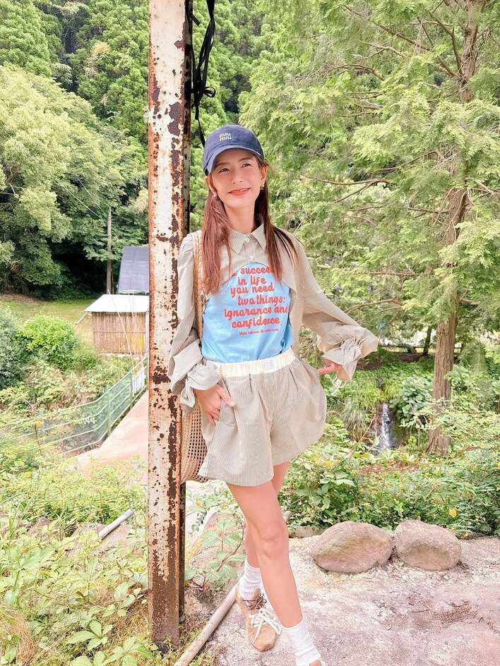 ショートパンツからはすらっとした美脚が伸びていて、スタイルの良さがうかがえますね。