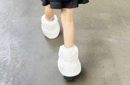 足元を見てみると、真っ白でボリュームがあるレッグウォーマー、“平成ギャル”のイメージが強いルーズソックスのように見えますね。