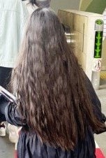 「娘の髪の毛長すぎるー」とつづっており、小学4年生・長女(9歳)の後ろ姿を見てみると、腰よりも長い超ロングヘアのようです。毛先までしっかり巻かれたヘアスタイルを披露しています。