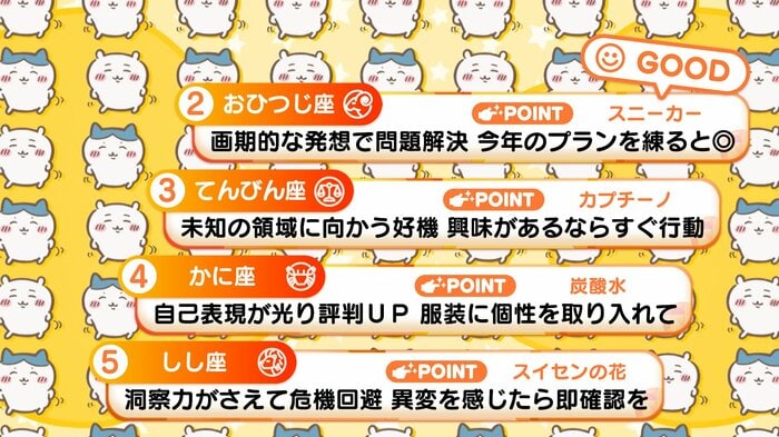 『めざましテレビ』で放送中の「ちいかわ占い」 テレビ放送がない日はお休みで、月~土:朝7時以降に更新予定です。