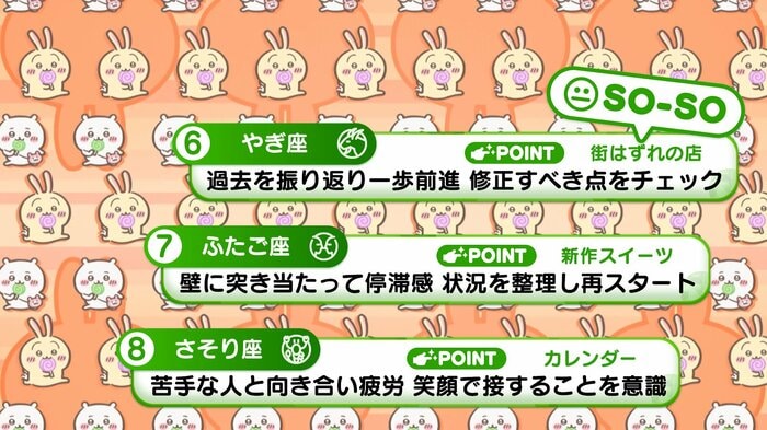 『めざましテレビ』で放送中の「ちいかわ占い」 テレビ放送がない日はお休みで、月~土:朝7時以降に更新予定です。