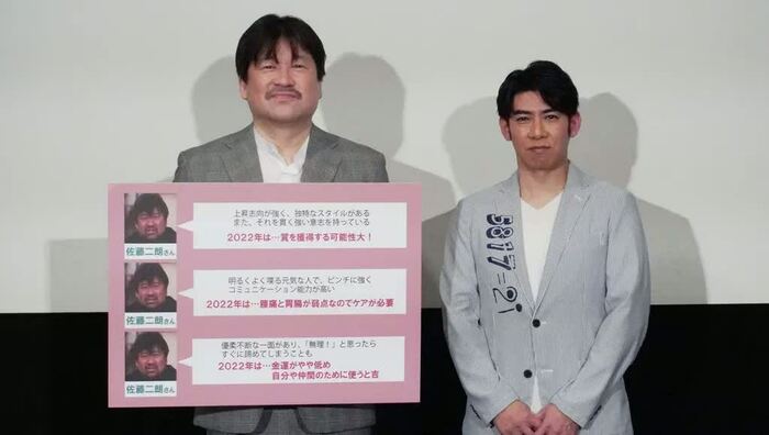 名前の総画数からは、「上昇志向が強く独特なスタイルがあり、それを貫く強い意志を持っていることから、2022年は賞を獲得する可能性大」と発表。すると、佐藤は「これは当てちゃいます、片山慎三監督でしょ。今後の映画界の至宝になってほしい存在なので」と思いを込めた。