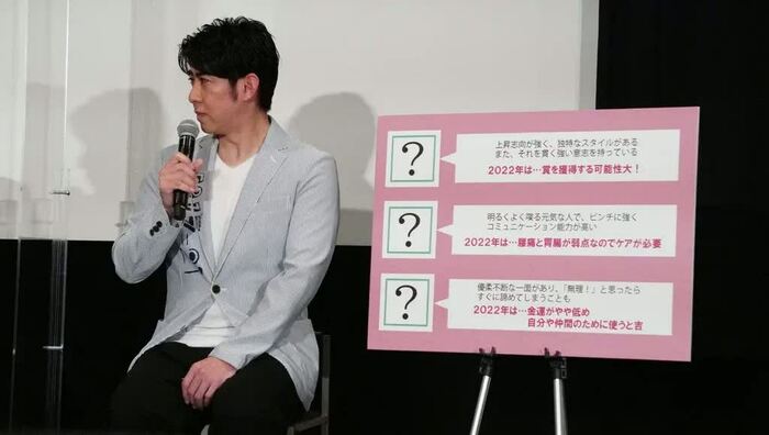 イベントでは、シウマが、映画関係者の名前を、それぞれ総画数、生年月日、携帯電話の下4ケタの合計から、2022年の運勢として鑑定。佐藤が誰の運勢なのかを予想することに。