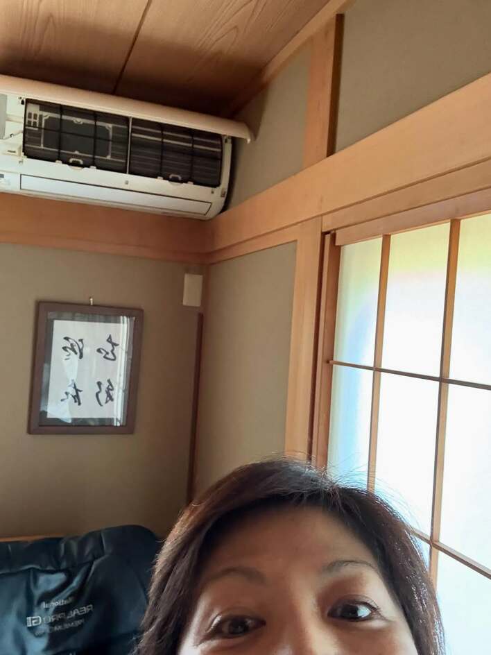 投稿では「早朝からしぶしぶエアコンのそうじをしました」と明かし、公開した写真には、自撮りをしている飯島さんの後ろには、フィルターまできれいになったエアコンが設置された和室が広がっています!