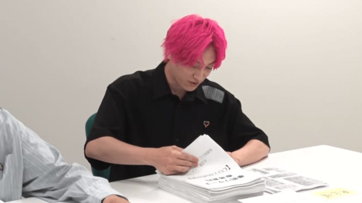 番組収録前、りんたろー。さんと兼近さんが楽屋に入ると、机の上には大量の資料や新聞記事のコピー、台本の束が。