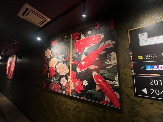 店内は、京都をモチーフにした古典柄の意匠を取り入れたユニークな内装デザインです。