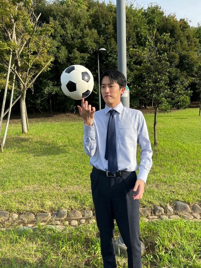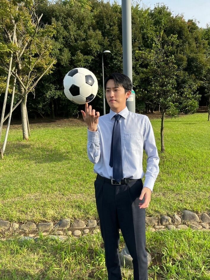 番組公式Xでは、「撮影現場にあったサッカーボールをくるくる回す杉野遥亮さん お上手です!!」のコメントとともに、杉野さんの写真が2枚、紹介されています。