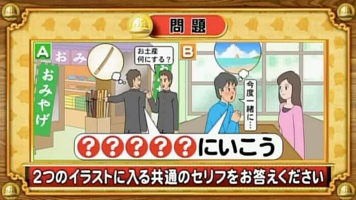 最後は、共通セリフ問題。次の2つのイラストに入る共通のセリフを答えてください。