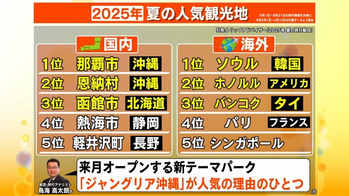 航空・旅行アナリストの鳥海高太郎氏によると、7月末オープンする、新テーマパーク「ジャングリア沖縄」が人気の理由の一つなのではということです。