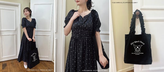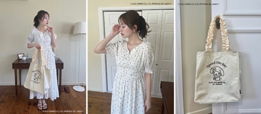 マイメロディ/総柄フレアワンピース ¥9,790、フリルトートバッグ ¥3,190